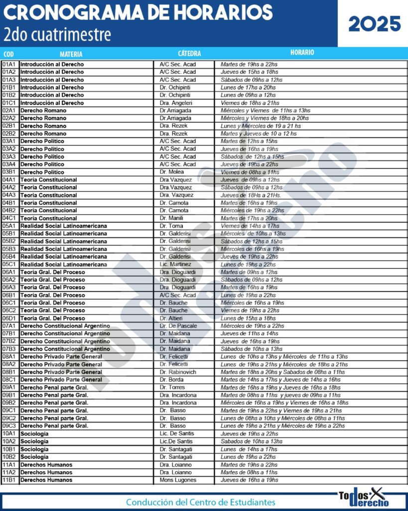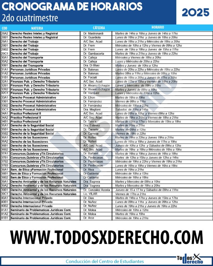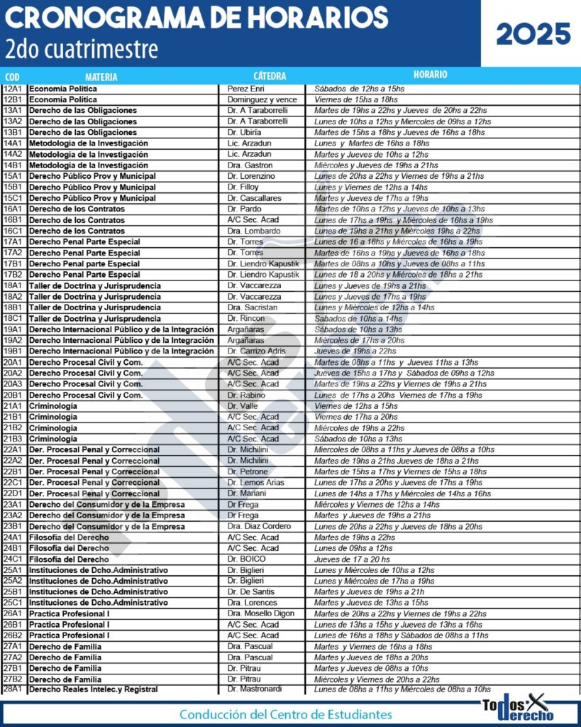 Horarios Práctica Profesional III – 2do cuatrimestre